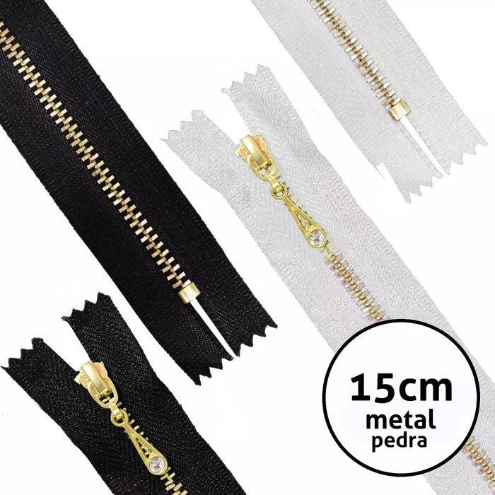 Descrição Zíper de Metal Fixo com Pedra 15cm Pacote 10un - 017554